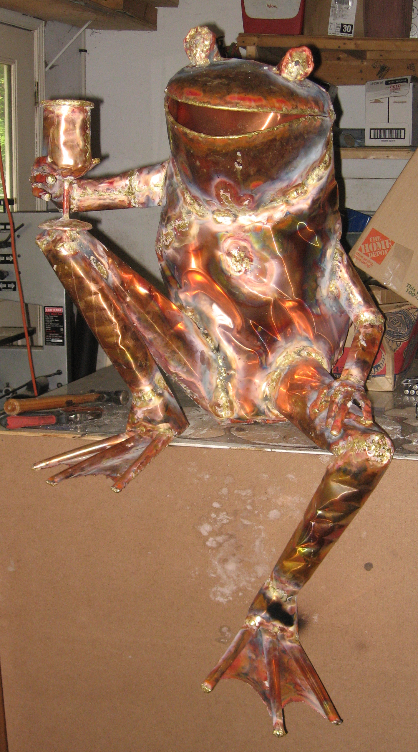 This frog sculpture by Beau Smith will be sitting on a wine barrel.